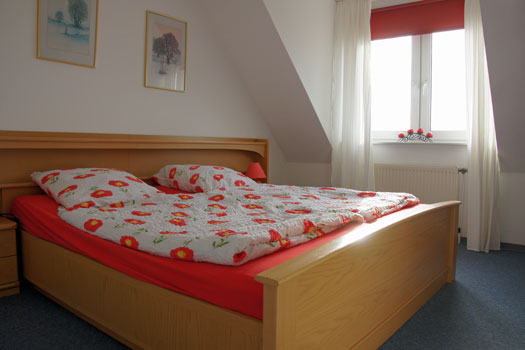 Unsere helle, gemütliche Ferienwohnung im Obergeschoss (für 4 - 6 Personen) ist mit allem ausgestattet, um Ihnen einen angenehmen Aufenthalt zu ermöglichen. Die Wohnung ist Allergiker geeignet! Ein weiteres Zimmer im Dachboden (2 weitere Betten). Dieses Zimmer ist über eine Raumspartreppe zu erreichen. Schlafzimmer (Doppelbett) Wohnzimmer mit Schlafcouch Kinderzimmer I mit 2 Einzelbetten Kinderzimmer II im Dachboden mit 2 Einzelbetten, Sat-TV, DVD Spieler und Video Recorder Küche mit Essplatz Dusche/WC windgeschützter Balkon, in herrlicher Südlage!